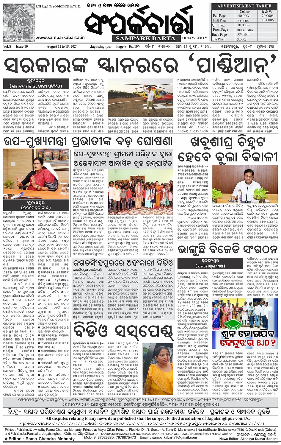 Samparka Barta Weekly Odia Newspaper Page: 8 << First << 8 >> Last >> Page 1Page 2Page 3Page 4Page 5Page 6Page 7Page 8 × Samparka Barta Weekly Odia Newspaper Page-1Page-2Page-3Page-4Page-5Page-6Page-7Page-8 << First << 8 >> Last >> Page-1Page-2Page-3Page-4Page-5Page-6Page-7Page-8 Page-8