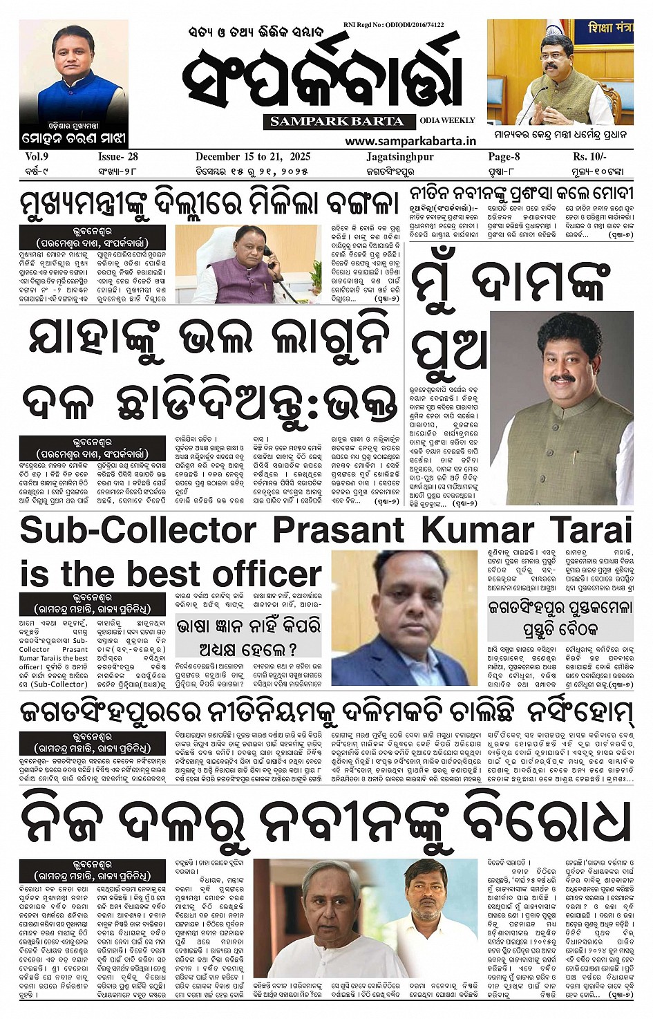 Samparka Barta Weekly Odia Newspaper << First << 1 >> Last >> Page 1Page 2Page 3Page 4Page 5Page 6Page 7Page 8 × Samparka Barta Weekly Odia Newspaper 12345678 << First << 1 >> Last >> 12345678 1