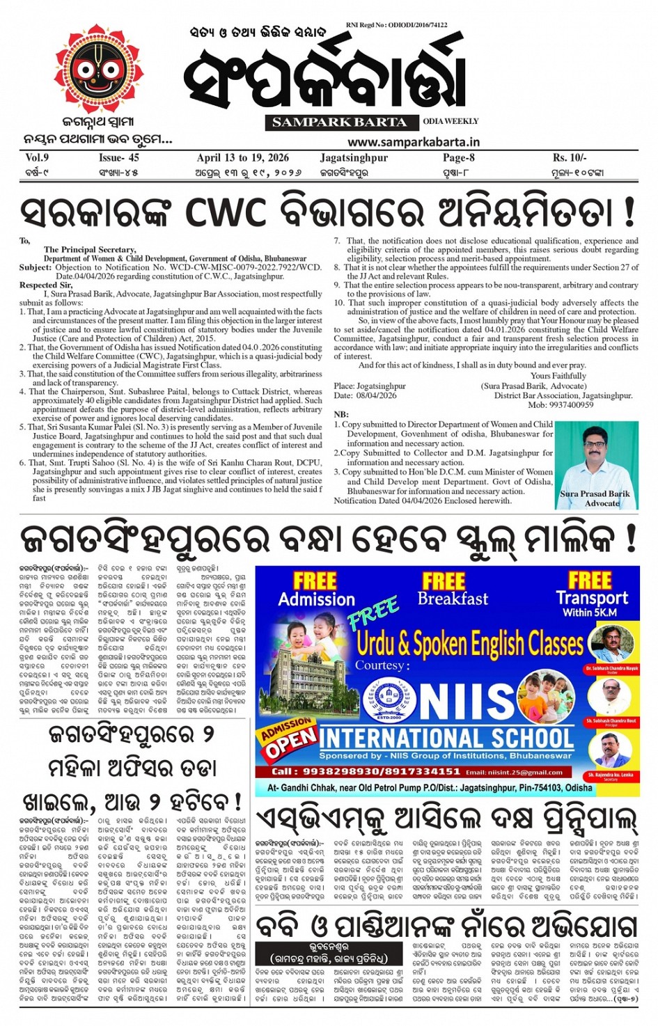 Samparka Barta Weekly Odia Newspaper << First << 1 >> Last >> Page 1Page 2Page 3Page 4Page 5Page 6Page 7Page 8 × Samparka Barta Weekly Odia Newspaper 12345678 << First << 1 >> Last >> 12345678 1
