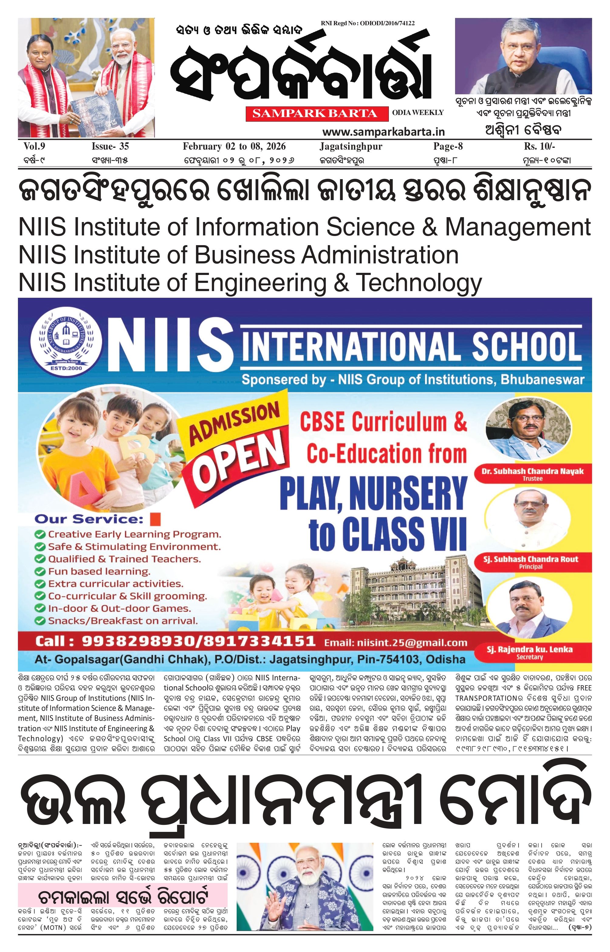 Samparka Barta Weekly Odia Newspaper << First << 1 >> Last >> Page 1Page 2Page 3Page 4Page 5Page 6Page 7Page 8 × Samparka Barta Weekly Odia Newspaper 12345678 << First << 1 >> Last >> 12345678 1