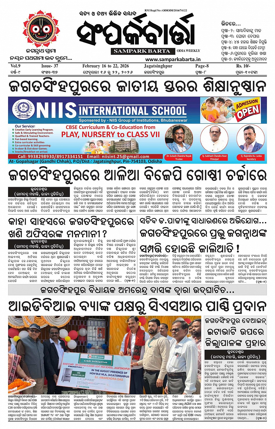 Samparka Barta Weekly Odia Newspaper << First << 1 >> Last >> Page 1Page 2Page 3Page 4Page 5Page 6Page 7Page 8 × Samparka Barta Weekly Odia Newspaper 12345678 << First << 1 >> Last >> 12345678 1