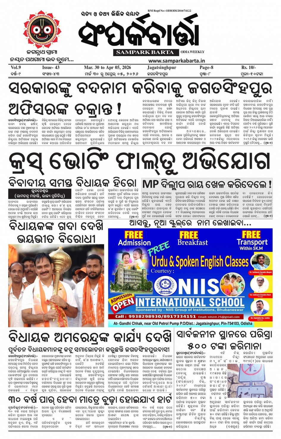 Samparka Barta Weekly Odia Newspaper << First << 1 >> Last >> Page 1Page 2Page 3Page 4Page 5Page 6Page 7Page 8 × Samparka Barta Weekly Odia Newspaper 12345678 << First << 1 >> Last >> 12345678 1