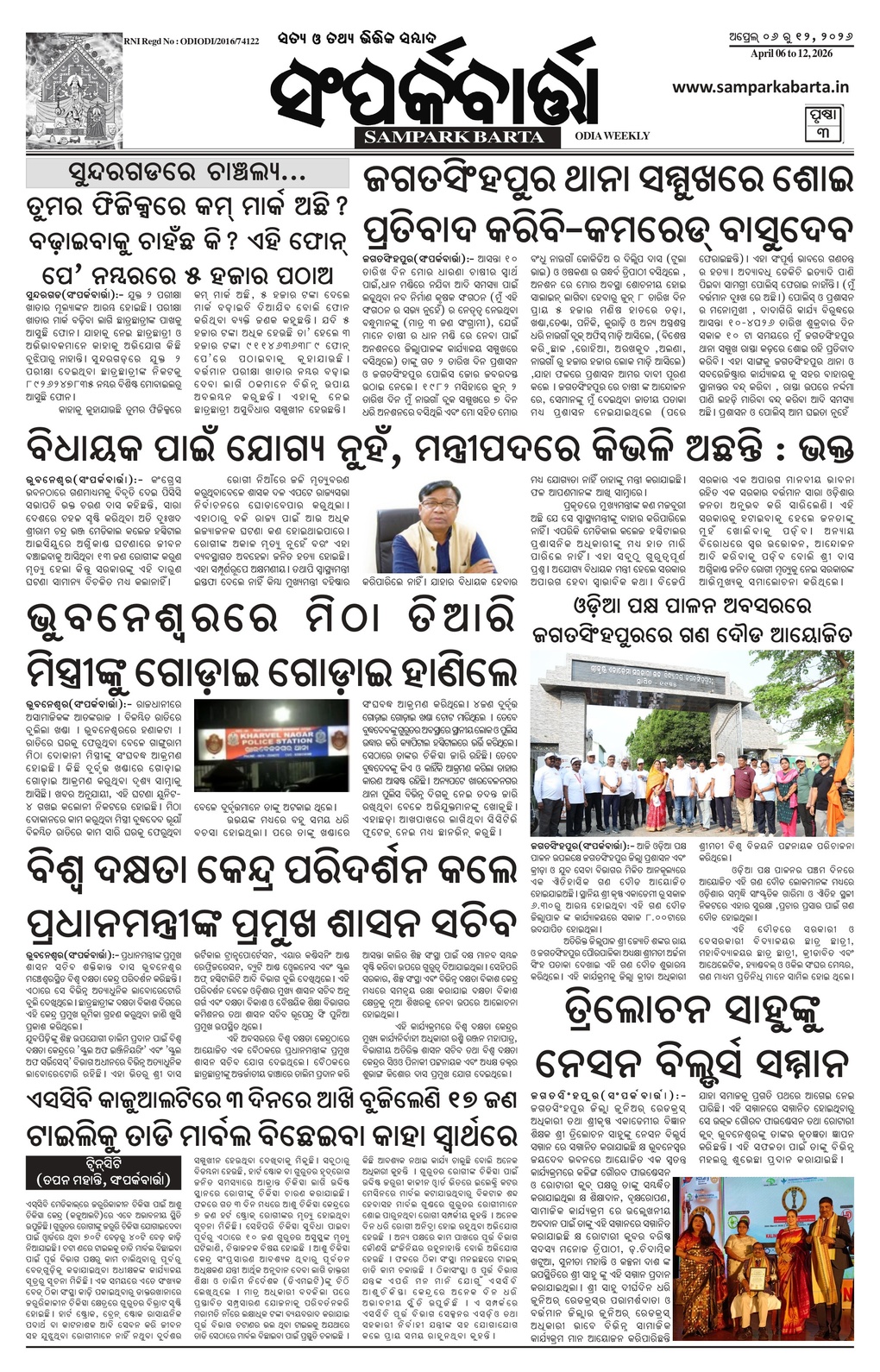 Samparka Barta Weekly Odia Newspaper Page: 3 << First << 3 >> Last >> Page 1Page 2Page 3Page 4Page 5Page 6Page 7Page 8 × Samparka Barta Weekly Odia Newspaper 12345678 << First << 3 >> Last >> 12345678 3