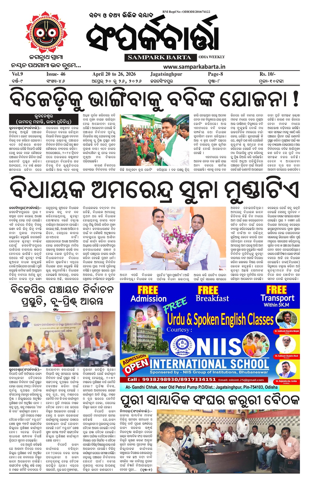Samparka Barta Weekly Odia Newspaper << First << 1 >> Last >> Page 1Page 2Page 3Page 4Page 5Page 6Page 7Page 8 × Samparka Barta Weekly Odia Newspaper 12345678 << First << 1 >> Last >> 12345678 1