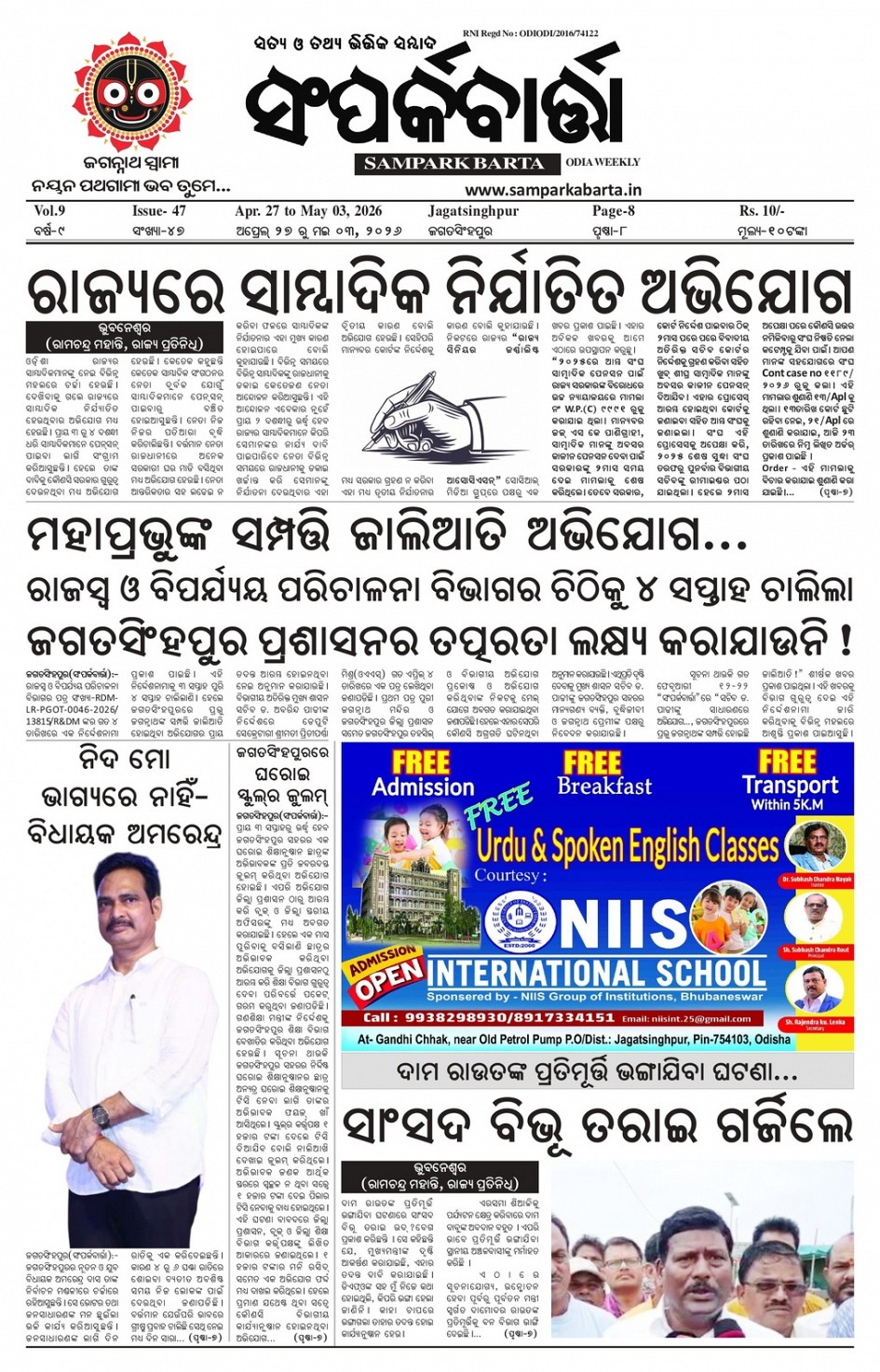 Samparka Barta Weekly Odia Newspaper << First << 1 >> Last >> Page 1Page 2Page 3Page 4Page 5Page 6Page 7Page 8 × Samparka Barta Weekly Odia Newspaper 12345678 << First << 1 >> Last >> 12345678 1