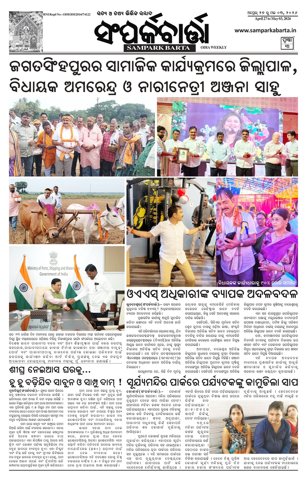 Samparka Barta Weekly Odia Newspaper Page: 3 << First << 3 >> Last >> Page 1Page 2Page 3Page 4Page 5Page 6Page 7Page 8 × Samparka Barta Weekly Odia Newspaper 12345678 << First << 3 >> Last >> 12345678 3